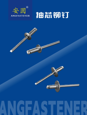 抽芯铆钉(blind rivets) ---------铆体(rivet body) 钉芯(rivet stem or rivet mandrel )。是一类单面铆接用的铆钉,但须使用专用工具——拉铆枪(手动、电动、气动)进行铆接。铆接时,铆钉钉芯由专用铆枪拉动,使铆体膨胀,起到铆接作用.这类铆钉特别适用于不便采用普通铆钉(须从两面进行铆接)的铆接场合,故广泛用于建筑、汽车、船舶、飞机、机器、电器、家具等产品上。其中以开口型扁圆头抽芯铆钉应用最广,沉头抽芯铆钉适用于表面需要平滑的铆接场合,封闭型抽芯铆钉适用于要求较高载荷和具有一定密封性能的铆接场合。