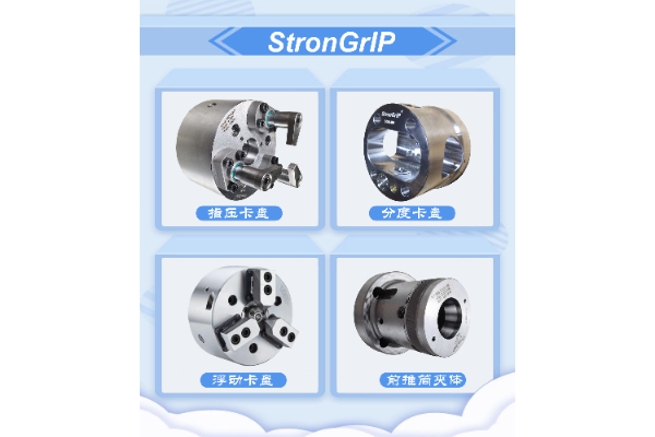 指压卡盘、分度卡盘、橡胶胀套、浮动卡盘、后拉卡盘等特殊卡盘,以及智能工装夹具。
