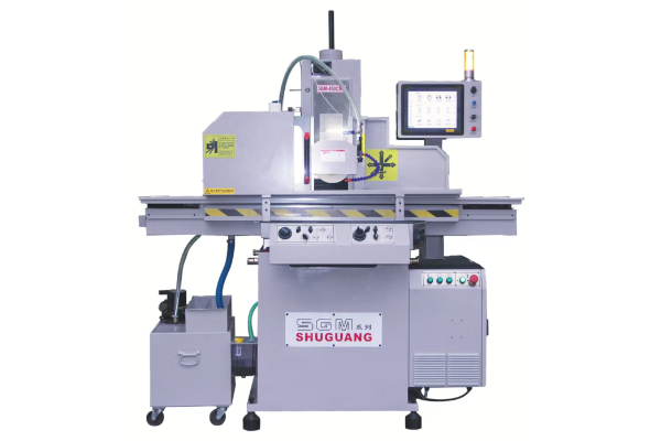 本机型数控平面成型磨床SGM-450CNC。 三轴伺服马达,前后使用滚珠丝杠+减速机传动,升降使用滚珠丝杠+蜗轮蜗杆传动,左右滚珠丝杠传动。 系统说明 德国原装进口控制器,0.1um增量式光栅尺全闭环控制(可使用绝对式光栅尺全闭环控制)由工控机读取光栅尺位置数据,使用总线通信windows10,64位操作系统下开发的数控磨床系统,。可加工中在线修改加工参数,对话式操作,简单直观。搭配12寸1080分辨率触屏。 自动加工---自动修正---自动补偿